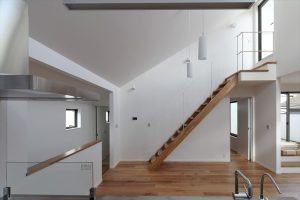 吹き抜けで繋がる空間構成